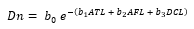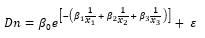 Dn = Diámetro normal; β0, β1, β2, β3 y β4 = Parámetros del modelo; x1, x2 y x3 = Variables predictoras; ε = Error aleatorio.