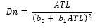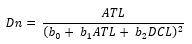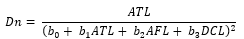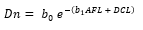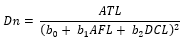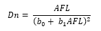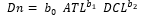Dn = Diámetro normal; ATL = Altura total LiDAR; AFL = Altura de fuste LiDAR; DCL = Diámetro de copa LiDAR; b0, b1, b2, b3 y b4 = Estimadores.