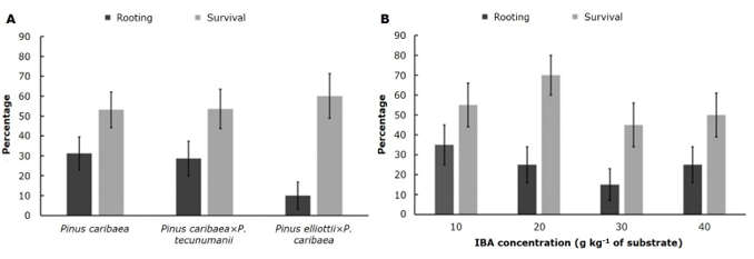 Figure 2. Percentage of rooting and survival of air layers in tropical pines.