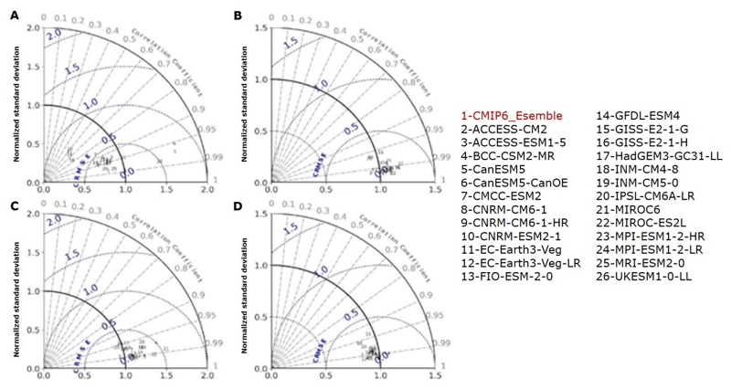 Figure 2. Taylor diagrams for the period 1995 to 2014.
